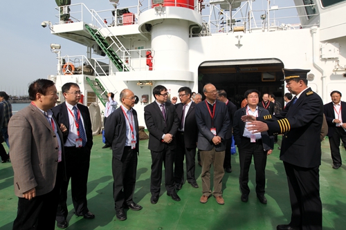 验收会上,“海洋科学综合考察船”项目建设法人单位、中科院海洋研究所所长孙松汇报了项目建设总体情况。验收委员会审议了工艺鉴定意见和工艺、设备、财务、档案专业组验收意见,对“科学”号进行了现场考察,并进行了深入细致讨论。