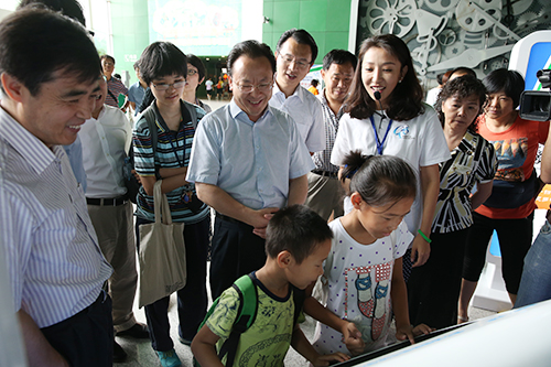 科技创新年度巡展”活动。经过四年发展,该活动已成为中科院的一个重要科普品牌。尤其是2014年度的巡展,在河北、安徽、广西、广东、新疆等9地展出,参观公众近百万人次。2015年是中科院实施“率先行动”计划的第一年,本次巡展的展品一方面来自重大科研成果,另一方面遴选自各研究所的精品科普展品。展出的成果体现了“三个面向”,这也是习总书记对中科院的要求。社会公众在这里既能看到面向世界科技前沿的成果,也能看到面向国家重大需求的成果,还能看到面向国民经济主战场、与老百姓息息相关的一些成果。