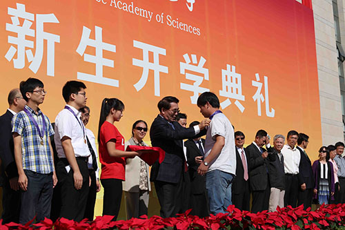 开学典礼上,国科大2014-2015学年度的390名“三好学生标兵”、7153名“三好学生”、1175名“优秀学生干部”和433名“优秀毕业生”受到表彰,白春礼为获奖学生代表颁发了奖章。教师代表、中科院数学与系统科学研究院研究员袁亚湘,获奖学生代表王轩,2015级本科生代表刘佳昕,2015级研究生代表李达,留学生代表、丹麦留学生Christina(克里斯蒂娜)先后发言。