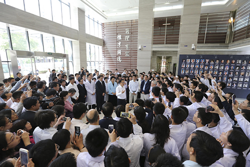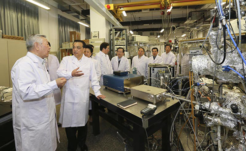 李克强来到中科院物理所,听取基础研究和原创成果介绍,他走进超导实验室和电子显微镜实验室,对相关领域研发进展和设备自主研制情况表示肯定。李克强说,基础研究的深度和广度,决定着国家原始创新动力和活力,只有夯实这个“地基”,才能矗起国家核心竞争力的“大厦”。推动我国产业发展向中高端水平迈进,必须有基础研究支撑。要加大对基础研究的支持力度,攻克一批重大关键技术难题,以更多高水平原创性成果推动应用研究和产业升级。