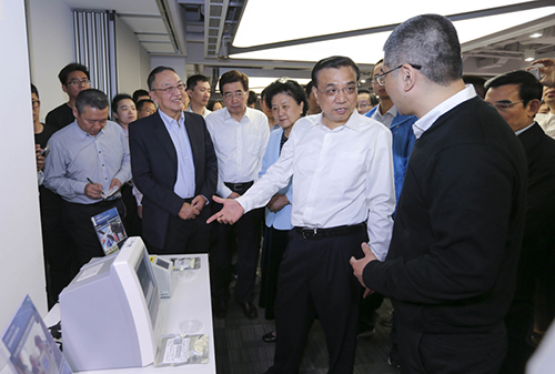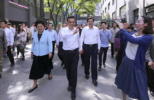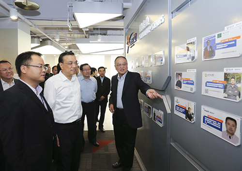李克强来到中关村创业大街创业会客厅,对他们为小微企业和创业者提供法律、金融、人力资源、知识产权保护、创业场所等便捷优惠服务表示赞许。李克强说,当前中国经济发展正处于新旧动力转换的关键时期,要保持经济运行在合理区间,使新的增长点破茧而出,简政放权、放管结合、强化服务改革必须跑出加速度,这是政府的应尽职责,我们不仅要简政有力,把该放的放到位,更要在监管和服务上下功夫,持续为大众创业、万众创新清障搭台,释放中国经济的无限活力。
