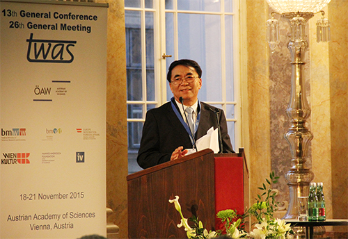 白春礼在讲话中指出,TWAS一直积极发挥着促进南南科技合作的重要作用,近年来还努力推动南北科技合作,此次在奥地利召开会议有益于促进南北科技合作交流。
