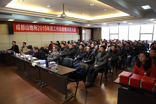 成都山地灾害与环境研究所召开职工大会,传达学习中科院2016年度工作会议精神,部署2016年度重点工作。所长邓伟作专题报告,副所长崔鹏、文安邦出席会议,所党委副书记(主持工作)罗晓梅主持会议。