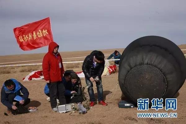 ▲“空间实验室”实践十号成功归来,工作人员在回收现场展开相关工作。新华社发(熊力学 摄)