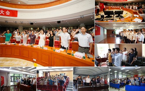 主会场和各分会场新党员同步宣誓,老党员重温入党誓词