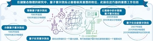随着霍尔效应研究进入量子化时代,重大研究成果不断涌现。1982年,崔琦和霍斯特·施特默发现了分数量子霍尔效应,因此获得了1998年诺贝尔物理学奖。2005年,科学家们又发现了石墨烯中的半整数量子霍尔效应,斩获2010年的诺贝尔物理学奖……