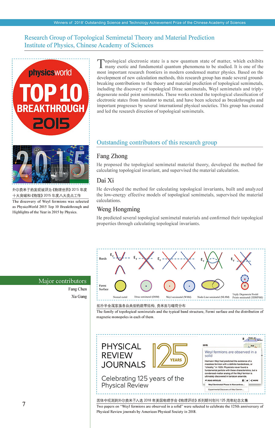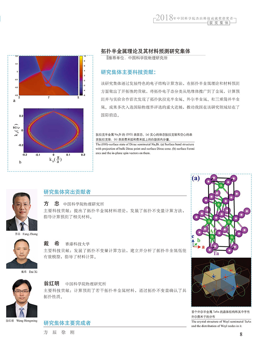 获奖集体:拓扑半金属理论及其材料预测研究集体
