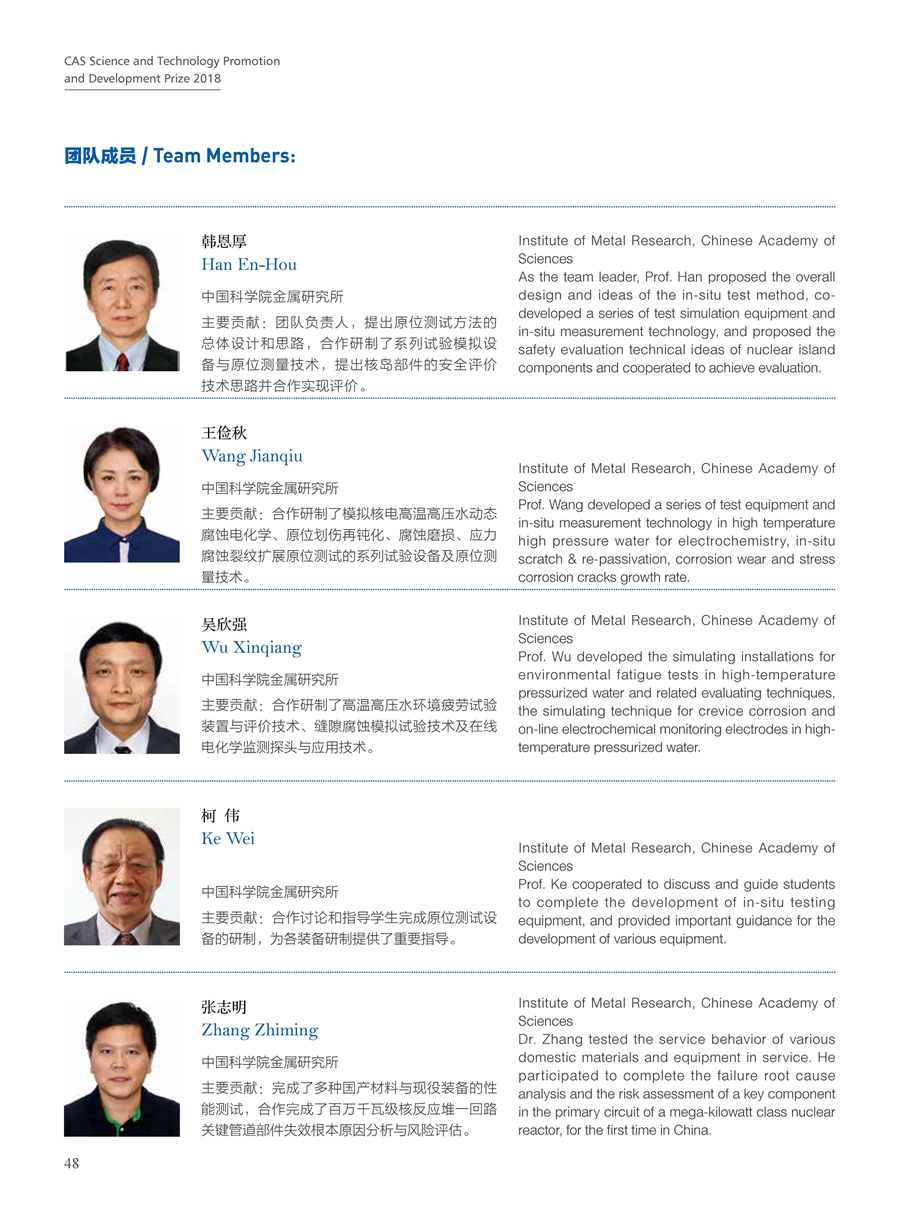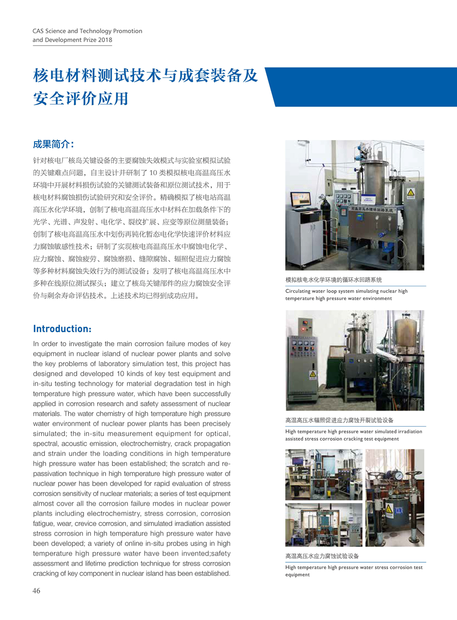 获奖团队:核电材料测试技术与成套装备及安全评价应用团队