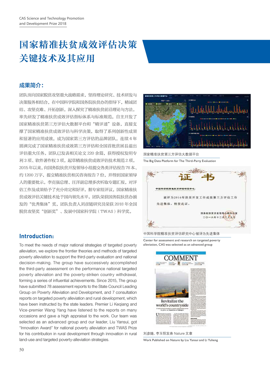 获奖团队:国家精准扶贫成效评估决策关键技术及其应用团队