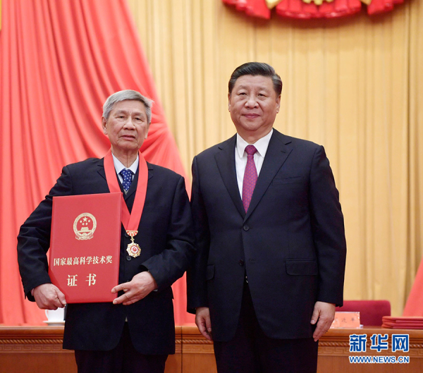 1月10日,2019年度国家科学技术奖励大会在北京人民大会堂隆重举行。中共中央总书记、国家主席、中央军委主席习近平向获得2019年度国家最高科学技术奖的无码影片 大气物理研究所曾庆存院士颁奖。 新华社记者 李学仁 摄