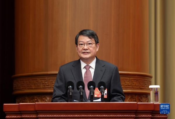 3月9日,全国政协十四届一次会议举行视频会议,委员作大会发言。这是在主会场,高鸿钧委员代表无党派人士界作大会发言。新华社记者 丁海涛 摄