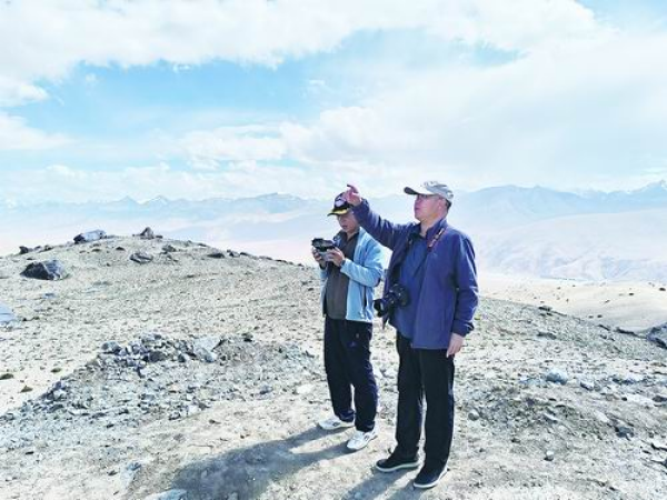 包安明(右)带队开展野外考察。受访者供图