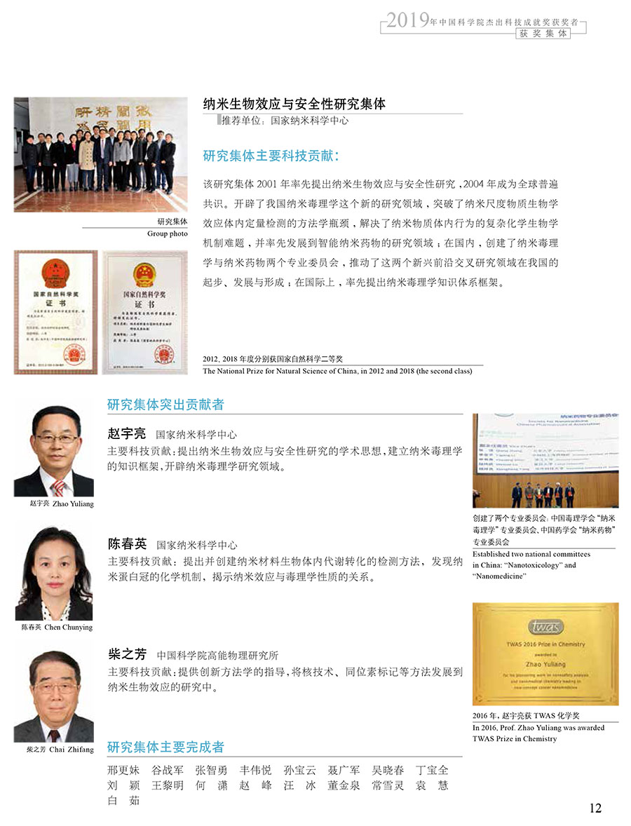 获奖集体:纳米生物效应与安全性研究集体