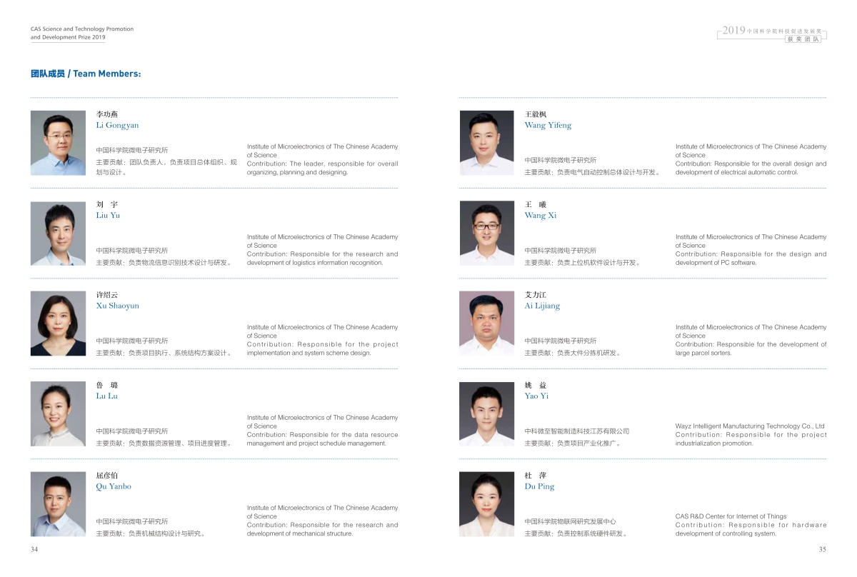 获奖团队:物流智能分拣装备系统研发及产业化应用团队