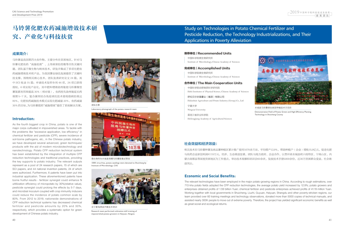 获奖团队:马铃薯化肥农药增效技术研发、产业化与精准扶贫团队