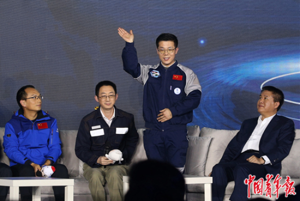 声学研究所工程师、“奋斗者”号海试队员廖佳伟起身与大家打招呼。陈剑/摄