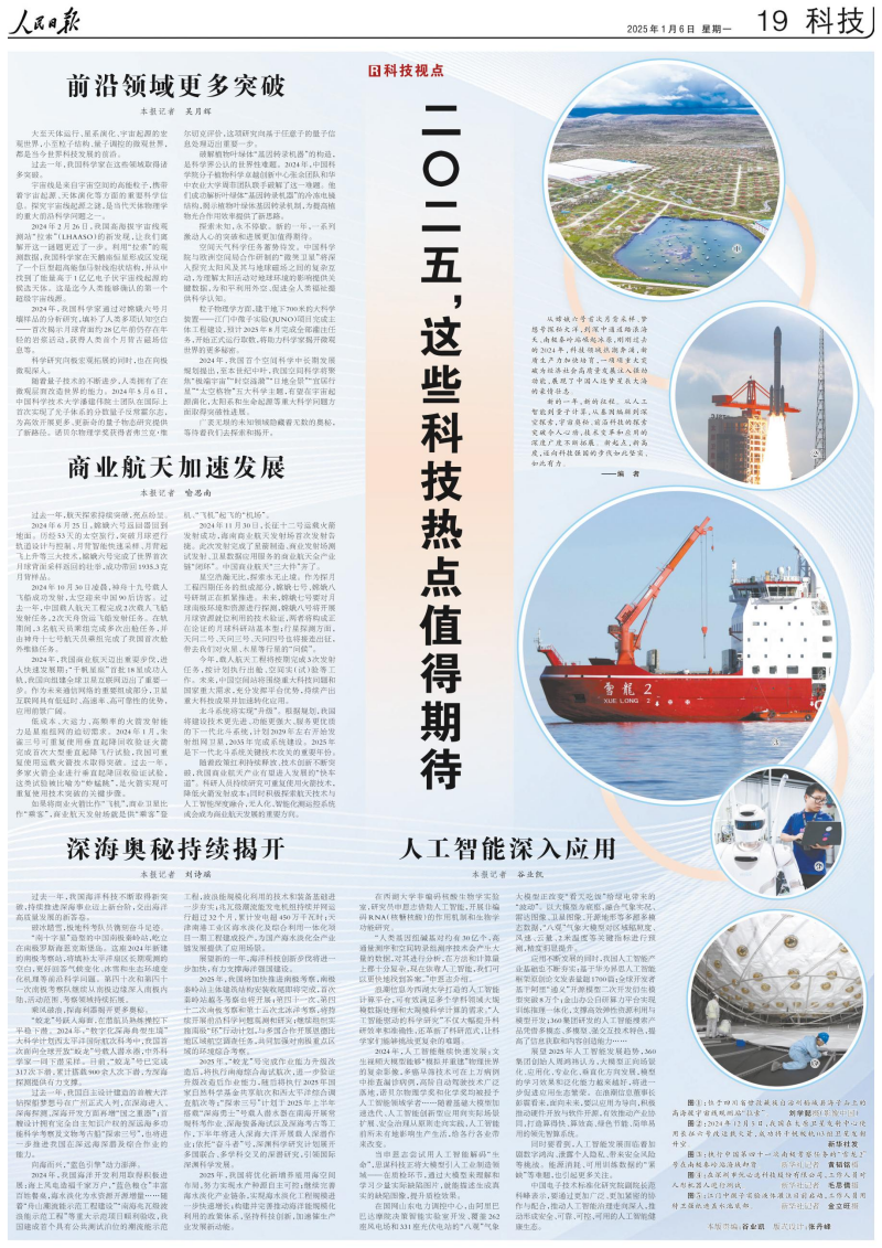 新的一年,新的征程。从人工智能到量子计算,从基因编辑到深空探索,宇宙奥秘、前沿科技的探索突破令人心动,技术变革和应用的深度广度不断拓展。新起点,新高度,迈向科技强国的步伐如此坚实、如此有力。