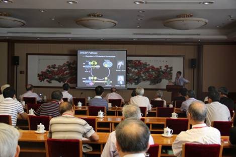 学术年会分两个单元进行,第一单元为常委会特邀报告,邀请外籍院士王晓东教授作了题为Biochemical Understanding of Cell Death的报告,邀请施蕴渝院士作了题为“非编码RNA研究-生命科学新的前沿”的报告;第二单元邀请9位2013年新当选院士作报告,金力院士作了题为“流动的基因”的报告、赵继宗院士作了题为“百年神经外科学的回溯与瞻望”的报告、施一公院士作了题为Structure of human γ-secretase的报告、桂建芳院士作了题为“鱼类性别异形与性别控制育种生物技术的发展”的报告、高福院士作了题为“新生突发病原跨种传播:H7N9病毒发生与人的感染”的报告、程和平院士作了题为“钙火花与超氧炫”的报告、韩斌院士作了题为“水稻基因组和遗传学研究”的报告、韩家淮院士作了题为“肿瘤坏死因子(TNF)信号通路间的互作”的报告、赫捷院士作了题为“食管癌分子分型与规范化治疗”的报告。