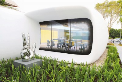 全球首座使用3D打印技术建造的办公室近日在阿联酋迪拜国际金融中心落成,该办公室的主体部分由盈创建筑科技(上海)有限公司3D打印完成。新华社发(田维摄)