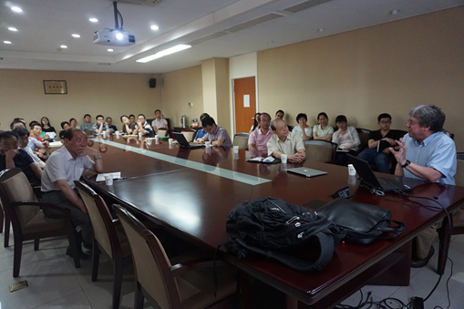 与会人员就石笋信号的传输过程,氧同位素比值的气候意义以及冰期结束的诱因等内容进行了热烈的讨论。会后,在新生代地质与环境研究室主任肖举乐的陪同下,Richard Lawrence Edwards参观了铀系年代学实验室并与相关人员进行了深入的探讨,对该实验的快速发展给予了极高的评价。