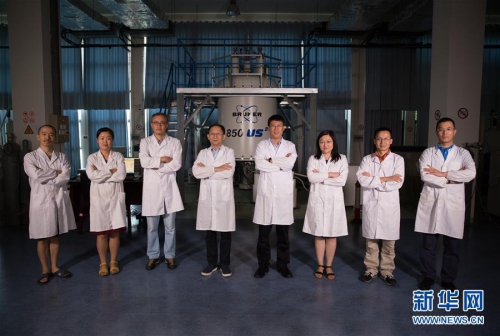 王文超、张欣、张钠、王俊峰、刘青松、刘静、林文楚、任涛(从左至右)在中科院合肥物质科学研究院强磁场科学中心(2017年8月17日摄)。哈佛“八博士”共聚合肥科学岛建起世界上最先进的强磁场实验装置的故事,是近年来“归国圈里”的美谈。新华社记者 郭晨 摄