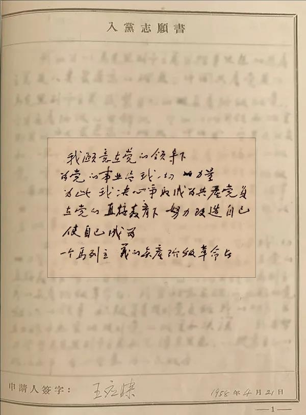 王应睐入党志愿书手填页
