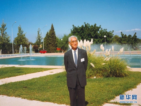 上世纪90年代,陆元九在北京惯导测试中心调研时在门前留影。新华社发(中国航天科技集团供图)