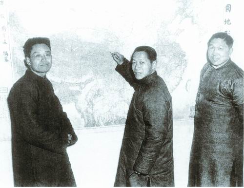 20世纪30年代,方俊(左)和曾世英一起编纂《中华民国地形挂图》。