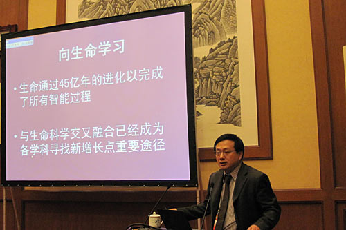 江雷院士作了“仿生智能多尺度界面材料的设计与制备”的专题报告。报告介绍了在此方面的研究进展,阐述了特殊浸润性材料的设计思想和制备方法。主要介绍了生物体表面的超疏水性机理,超疏水性界面材料的仿生合成与制备,如何实现超疏水性界面材料的多功能化,“纳米界面材料的二元协同效应”材料设计理念,仿生智能人工离子通道,仿生智能定向集水纳米纤维,特殊浸润性表面的化学反应,基础研究成果向应用领域的转化等方面的内容。