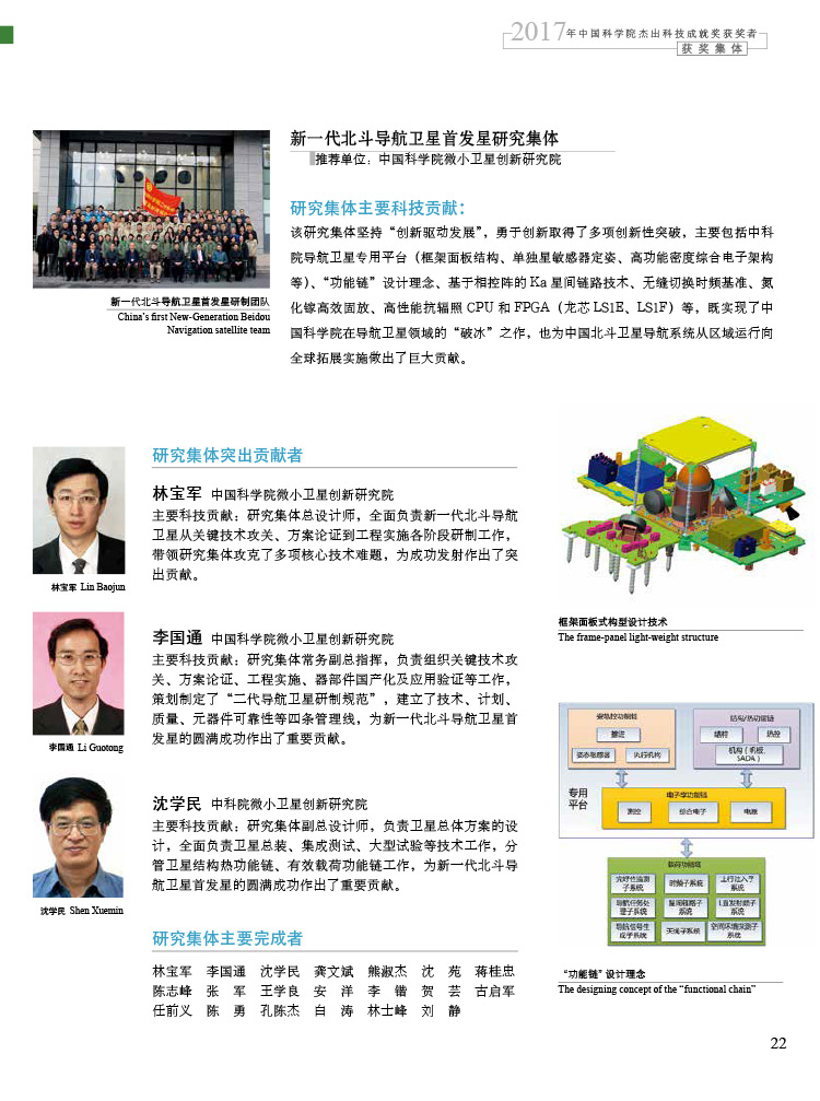 获奖集体:新一代北斗导航卫星首发星研究集体