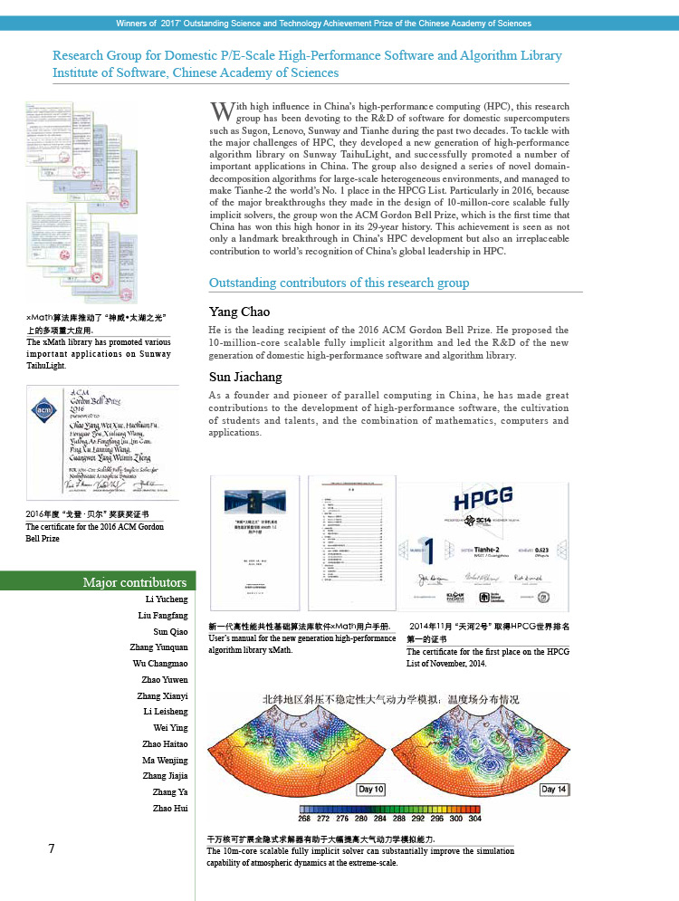 获奖集体:国产P/E级高性能软件与算法库研究集体