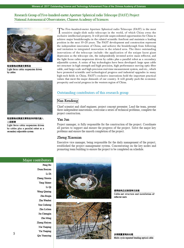 获奖集体:500米口径球面射电望远镜(FAST)工程研究集体
