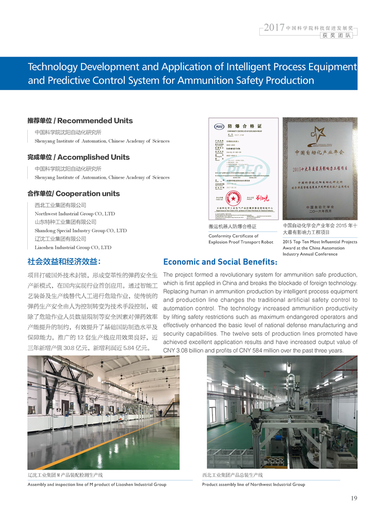 获奖团队:弹药安全生产智能工艺装备与预测控制系统技术研发及推广应用团队