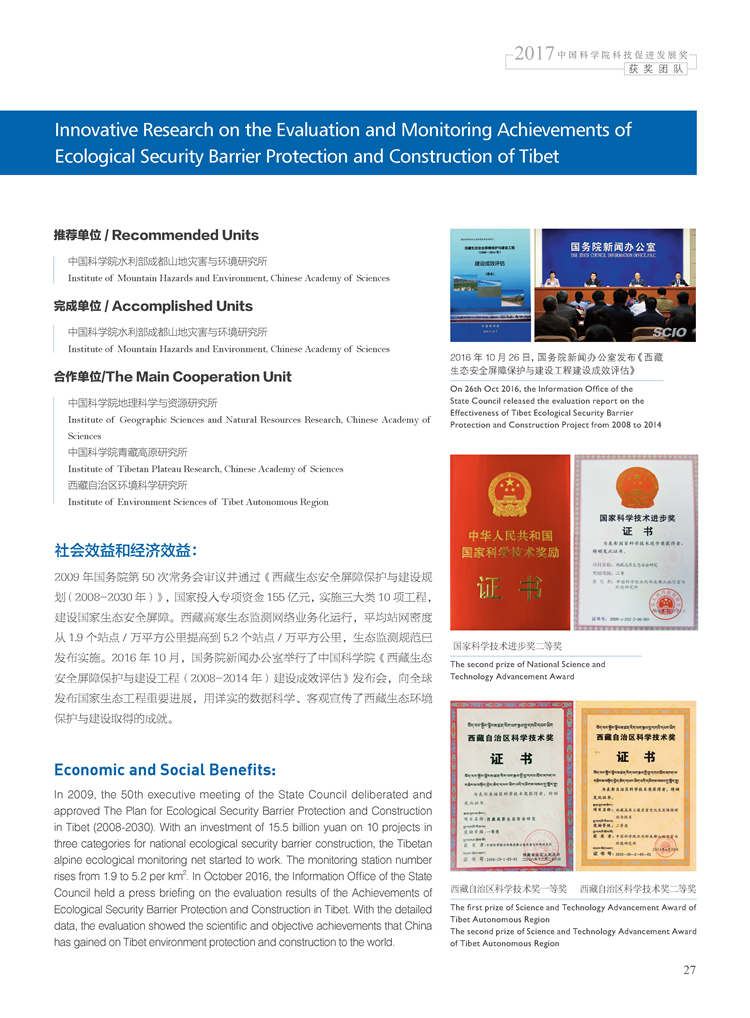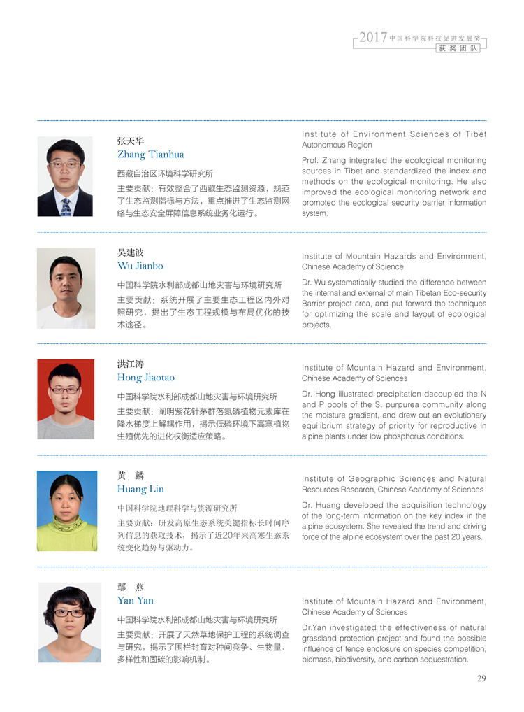 获奖团队:西藏生态安全屏障保护与建设成效监测与评估创新团队