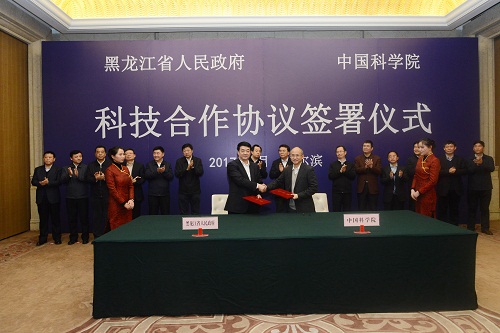 与黑龙江省人民政府在哈尔滨召开院省科技合作座谈会并签署“十三五”科技合作协议。中科院院长、党组书记白春礼,黑龙江省委副书记、省长陆昊出席座谈会并讲话,座谈会由陆昊主持。