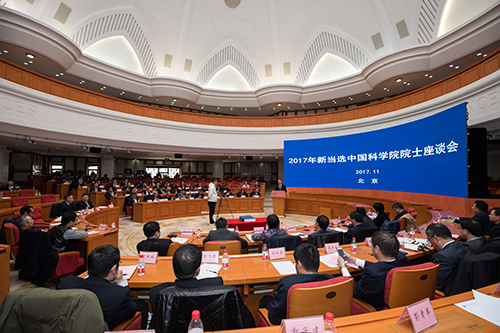 院士座谈会在北京召开,中科院院长、学部主席团执行主席白春礼为新当选院士颁发院士证书并发表讲话。