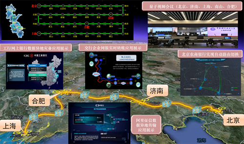 “京沪干线”全线路密钥率大于20kbps,可满足上万用户的密钥分发业务需求。量子卫星兴隆地面站到北京接入站点全线密钥率大于5kbps,可满足基本数据通信需求。业务应用方面,已实现北京、上海、济南、合肥、乌鲁木齐南山地面站和奥地利科学院6点间的洲际量子通信视频会议,交通银行京沪间远程企业网银用户的量子保密通信实时交易,中国工商银行网上银行京沪异地数据的量子加密传输和灾备,阿里征信数据的异地加密传输以及量子加密流媒体视频点播等应用示范。