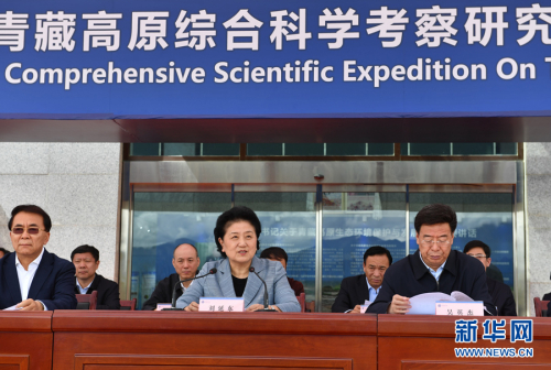 8月19日,第二次青藏高原综合科学考察研究在拉萨启动。中共中央总书记、国家主席、中央军委主席习近平发来贺信,向参加科学考察的全体科研人员、青年学生和保障人员表示热烈的祝贺和诚挚的问候。中共中央政治局委员、国务院副总理刘延东在启动仪式上宣读习近平的贺信,宣布第二次青藏高原综合科学考察研究启动。新华社记者 张汝锋 摄