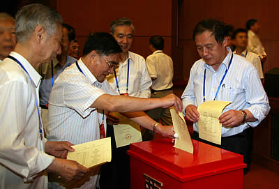 第十四次院士大会6月23日下午在京西宾馆举行第一次全体院士会议。路甬祥在会上提出,深入贯彻落实党的十七大精神,全面推进国家科学思想库建设。