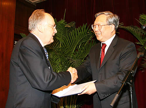 路甬祥院长与外籍院士诺奖得主亲切握手