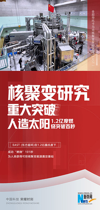 “人造太阳”刷新世界纪录 实现可重复1.2亿℃燃烧101秒
