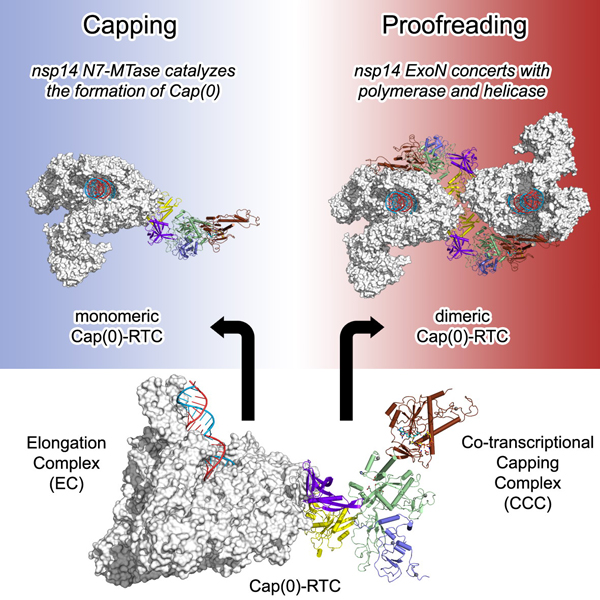 新冠病毒转录复制复合体的mRNA加帽状态与复制校正状态