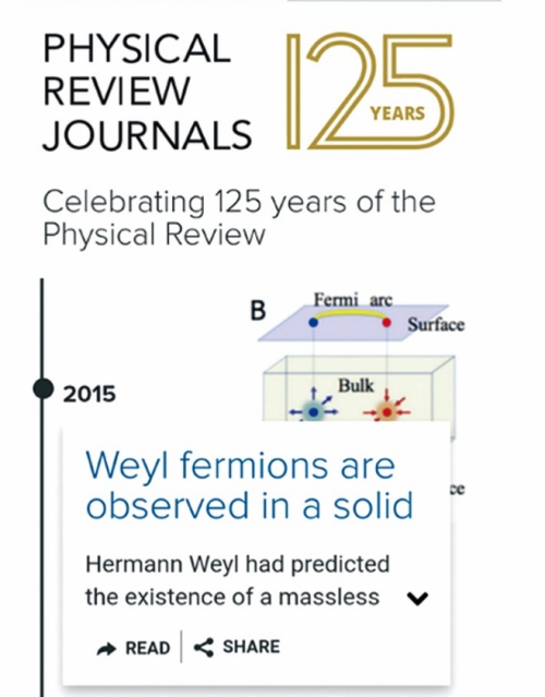外尔费米子成果入选美国物理学会125周年纪念论文集