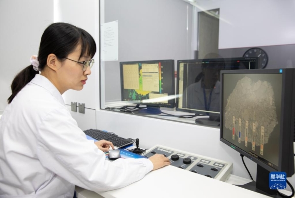 10月18日,在中科院地质与地球物理研究所电子探针与扫描电镜实验室,科研人员在做实验。新华社记者 金立旺摄