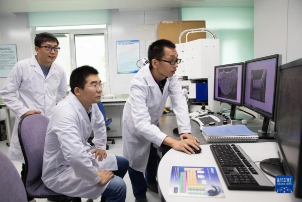 中科院地质与地球物理研究所电子显微镜实验室团队(10月18日摄)。新华社记者 金立旺摄