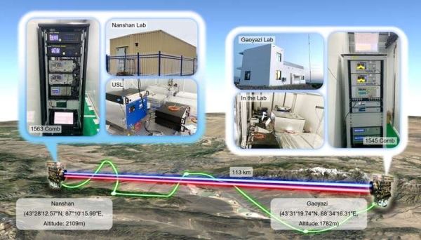 百公里高精度时频传递实验示意图。研究团队供图