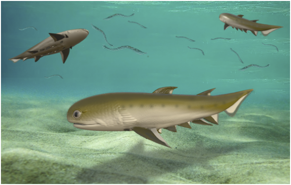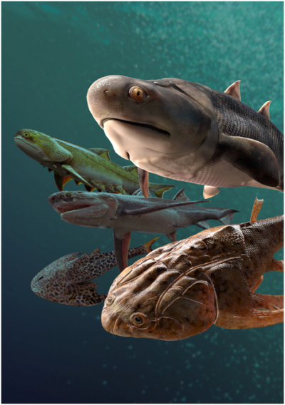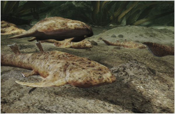 4.4亿年前的鲨鱼近亲——新塑梵净山鱼。(拟石科技制作)