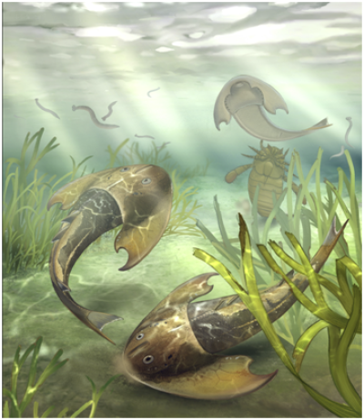 4.36亿年前灵动土家鱼为脊椎动物成对附肢起源提供关键化石证据。灵动土家鱼生态复原图(郑秋旸绘)