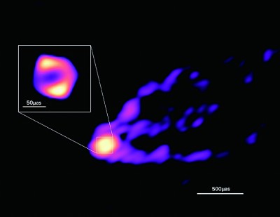 GMVA是一个由全球多个望远镜组成的阵列。“ALMA和GLT的加入,让这个阵列形成一台口径等效于地球直径的大望远镜,提高了成像能力。”德国马普射电天文研究所的托马斯·克里奇鲍姆说,“这让我们获得了一个新视角,可以看到喷流是如何从中央超大质量黑洞周围的环状结构中出现的,也可以在另一个波段测量黑洞周围环状结构的直径。”
