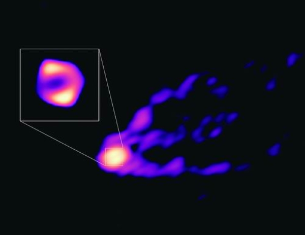 在这张照片中,首次直观展现了喷流如何从黑洞中喷薄而出。上海天文台供图